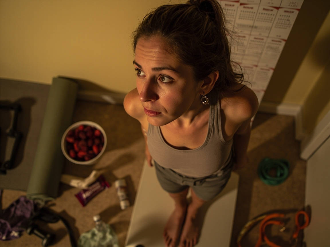 我渐渐摸索出“减肥表演学”的精髓:每月1号必定清空冰箱里的零食,把健身环摆在客厅最显眼的位置,周末去网红健身房拍几张汗流浃背的照片。但真正的运动时间加起来,可能还不够看完一部电影。有次闺蜜突击检查我的运动手环,发现我所谓的“每天跑步五公里”,其实是在小区楼下便利店来回走了三趟买冰淇淋。最讽刺的是去年双11,我囤了两千块的健身服和代餐粉,结果大部分时间都挂在衣柜里当装饰,代餐粉则成了加班时的夜宵。